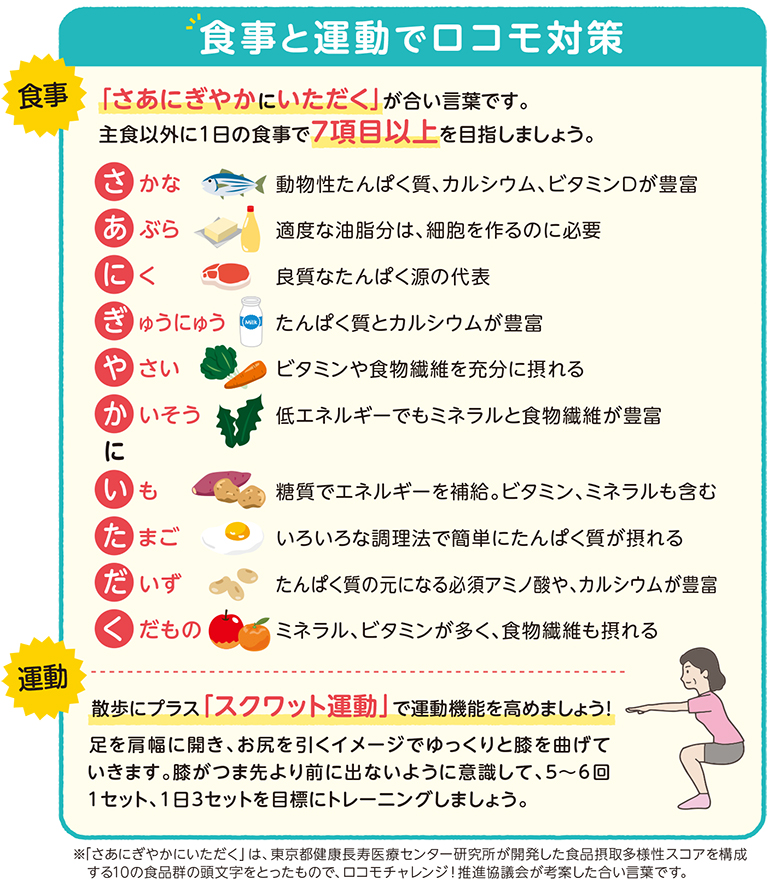 「食事と運動でロコモ対策」を参考にして、ぜひ対策していきましょう。