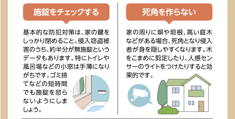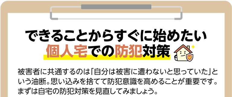 強盗や空き巣に狙われやすい家の特徴や個人宅での防犯対策をご紹介します。