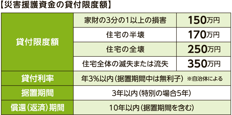 災害で負傷したり、住居が半壊以上の損害を受けた人が利用できる貸付です。(問い合わせ先:市区町村)