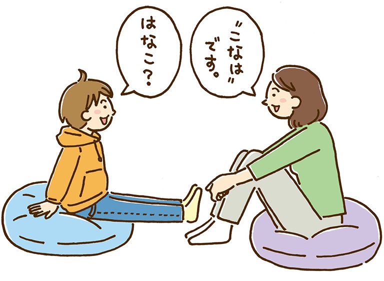 わたしの名前は「こなは」です。あなたは「うろた」です。といった具合に、最初は名前をさかさま言葉にして子どもに話しかけてみましょう。最初は何のことかわからなくても「あ、花子だ!」と分かるようになってきます。このとき、聞いた音、発する音が頭の中で複雑に作用しあい、言葉の音に対して理解が深まります。また今日は「スイラーレカ」だよなど、日常に織り交ぜると、子ども自身も「さかさま言葉で言ってみよう」と、家庭内が盛り上がります。