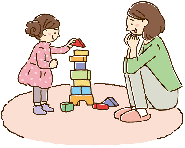 ポジティブなフィードバックでは、出来たこと、頑張れたことを伝えてあげます。「3段目まで上手に詰めるようになったね」「何回も頑張って凄いね」。そうすると、子どもは「3段目までは詰めるようになった」「何回も頑張れた」ということを記憶するので、次に積み木をするときも「やってみたいな」と積極的に思えるのです。