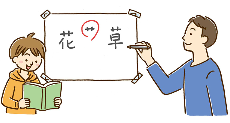 用意するのは紙とペンだけ。紙の中央に部首、例えば「くさかんむり」だけを書きます。そして親子で交互に、くさかんむりの付く漢字を挙げてきます。このとき、子どもは漢字辞典を引き放題。親は記憶力だけなど、ハンデがあっても良いでしょう。子どもは勝ちたい気持ちで、知らない漢字も引くようになり、辞書を引く習慣が身に付きます。