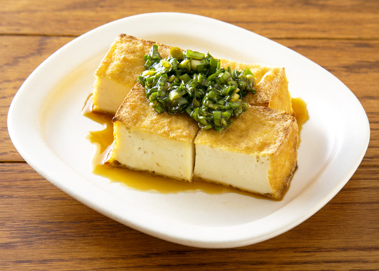 (4)厚揚げはオーブントースターや魚焼きグリルで全面焼き色がつくまで焼く。