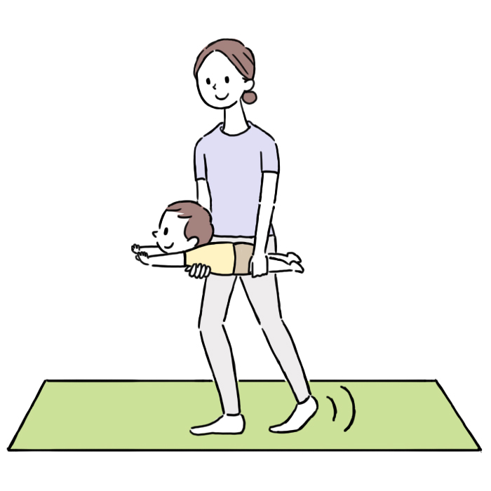 子どもは手足をピンと伸ばした状態をキープすることが大切です。持ち上げるときにバランスが取りにくい場合は、体に近い位置で持ち上げましょう。よく動く元気な子どもの場合は、大人がもう1人支えるようにして抱き上げましょう。