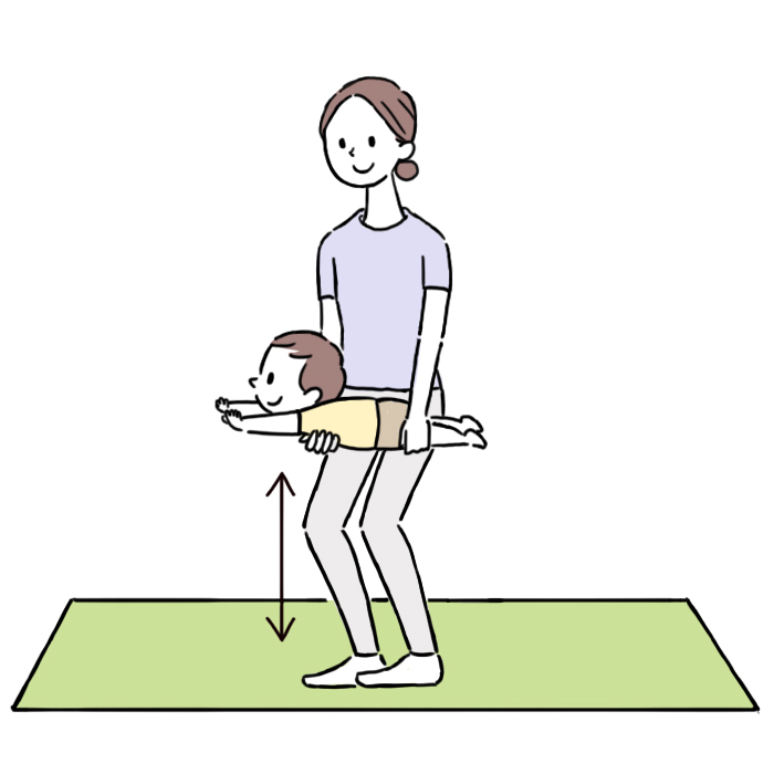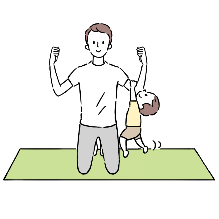 最初にご紹介するのが、「ヒーローごっこ」。子どもを持ち上げ、空を飛んでいるように動かす運動あそびです。一見簡単そうにも見えますが、大人は子どもの体重を支える筋力が必要になります。また、子どもは姿勢をキープする筋肉を鍛えたり、落ちないようバランスを取る能力を鍛えることができます。